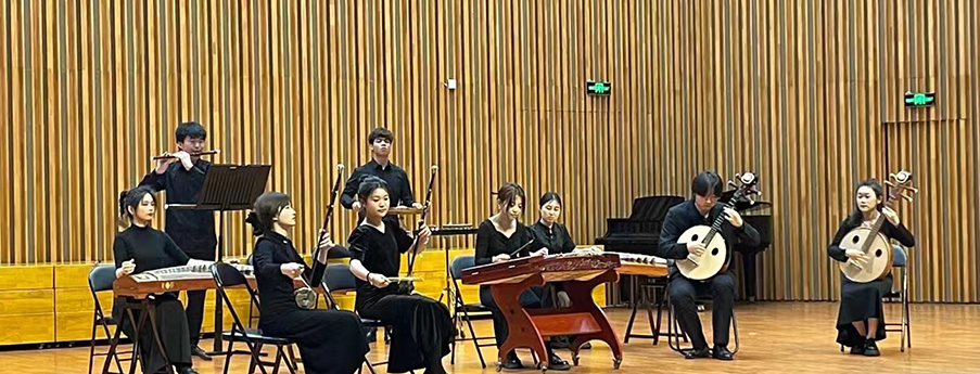 九江学院民族室内乐团成立于2008年,民族室内乐团由胡琴、琵琶、古筝、阮、笛子、扬琴、笙、打击乐等乐器组成,是九江具有高水平、专业性的民族室内乐团。其成员均是九江学院艺术学院各专业优秀的青年教师与学生。曾在2024年文旅部举办的“文华奖”江西初选中荣获第二名。