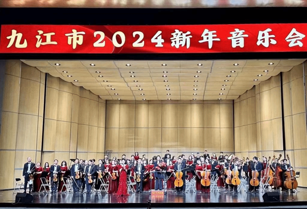 长江奔流,奋进新征程;九派浔韵,奏响新时代。1月1日晚,由九江学院和九江市文广新旅局联合主办的“九江市2024新年音乐会”在九江市文化艺术中心举行。音乐会以弘扬伟大抗洪精神,歌颂美好生活为主旋律。九江市委书记刘文华,市委副书记、市长蒋文定等市领导,九江学院党委书记李明斌,党委副书记、校长陈小林,党委委员、副校长鲁卫东,党委委员、组织部部长杨杰,以及600余名观众一起共同观看演出。