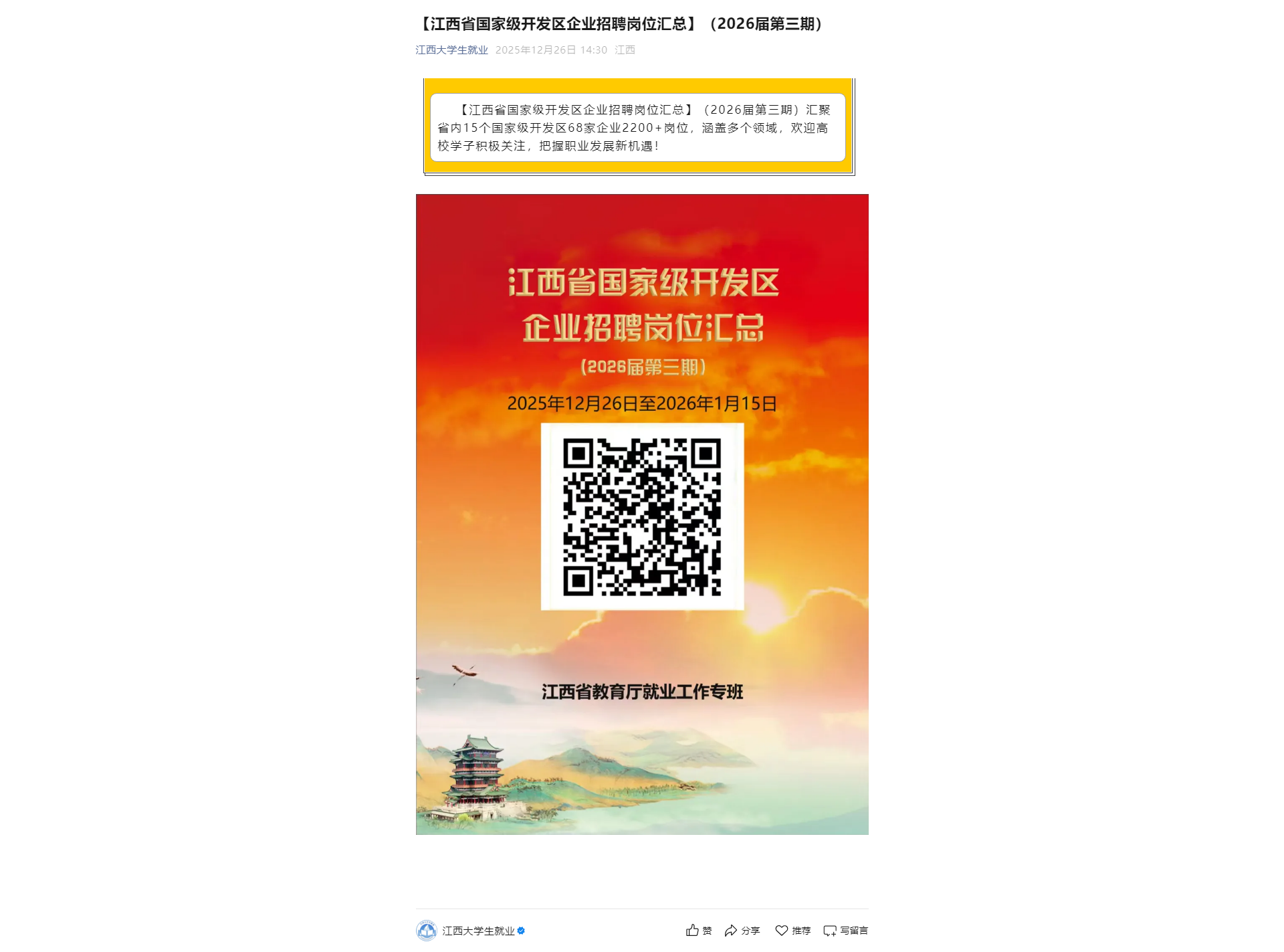 【江西省国家级开发区企业招聘岗位汇总】(2026届第三期)