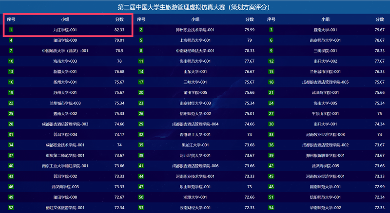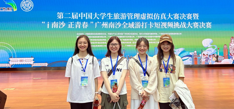 据悉,中国大学生旅游管理虚拟仿真大赛由中国旅游协会旅游教育分会、南开大学旅游与服务学院联合主办,旨在提升旅游管理专业大学生商业思维模式和经营决策能力的国家级专业赛事。大赛通过创建各种虚拟仿真的实验背景,经过多个回合的数据分析和战略决策,根据累计投资回报率指标来衡量参赛队伍水平的选拨性赛事。第二届中国大学生旅游管理虚拟仿真大赛自202415日竞赛通知发布以来,来自全国各地的163所高校、526支队伍踊跃报名参赛。经过激烈角逐,224支队伍成功晋级决赛,齐聚南沙展开为期五天的巅峰对决。我校代表队与来自南开大学、厦门大学、华南师范大学、海南大学、云南大学、东北财经大学、广东财经大学、香港理工大学、澳门城市大学、澳门旅游学院等参赛选手同台竞技,展现出了优秀的专业素养与良好的临场应变能力。