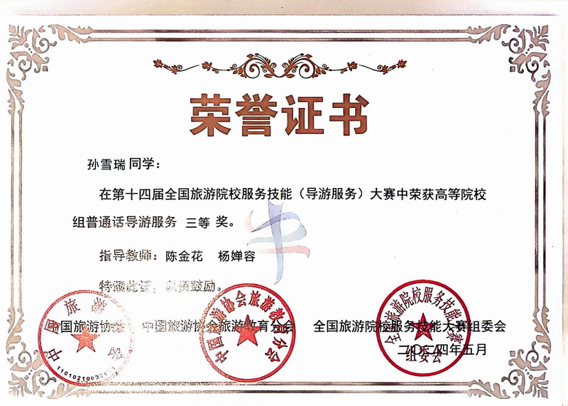 喜报!我院学子在第十四届全国旅游院校服务技能(导游服务)大赛中取得优异成绩