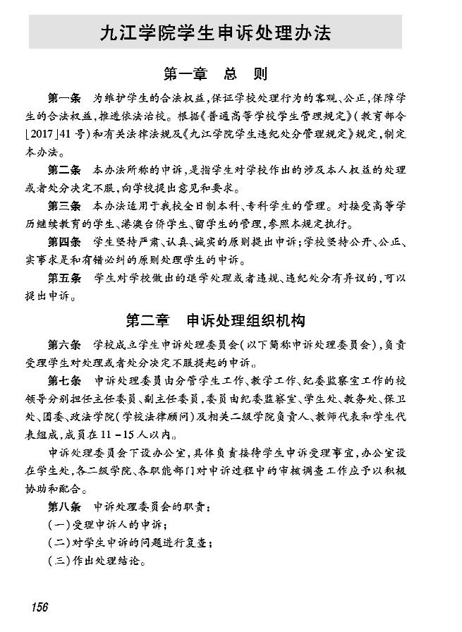 九江学院学生申诉处理办法