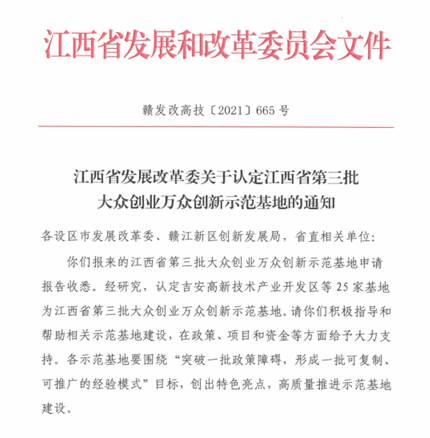 近日,江西省发展改革委发布《江西省发展改革委关于认定江西省第三批大众创业万众创新示范基地的通知》,共有25家单位被认定为第三批大众创业万众创新示范基地,其中高校类6家。我校获批为省级大众创业万众创新示范基地。