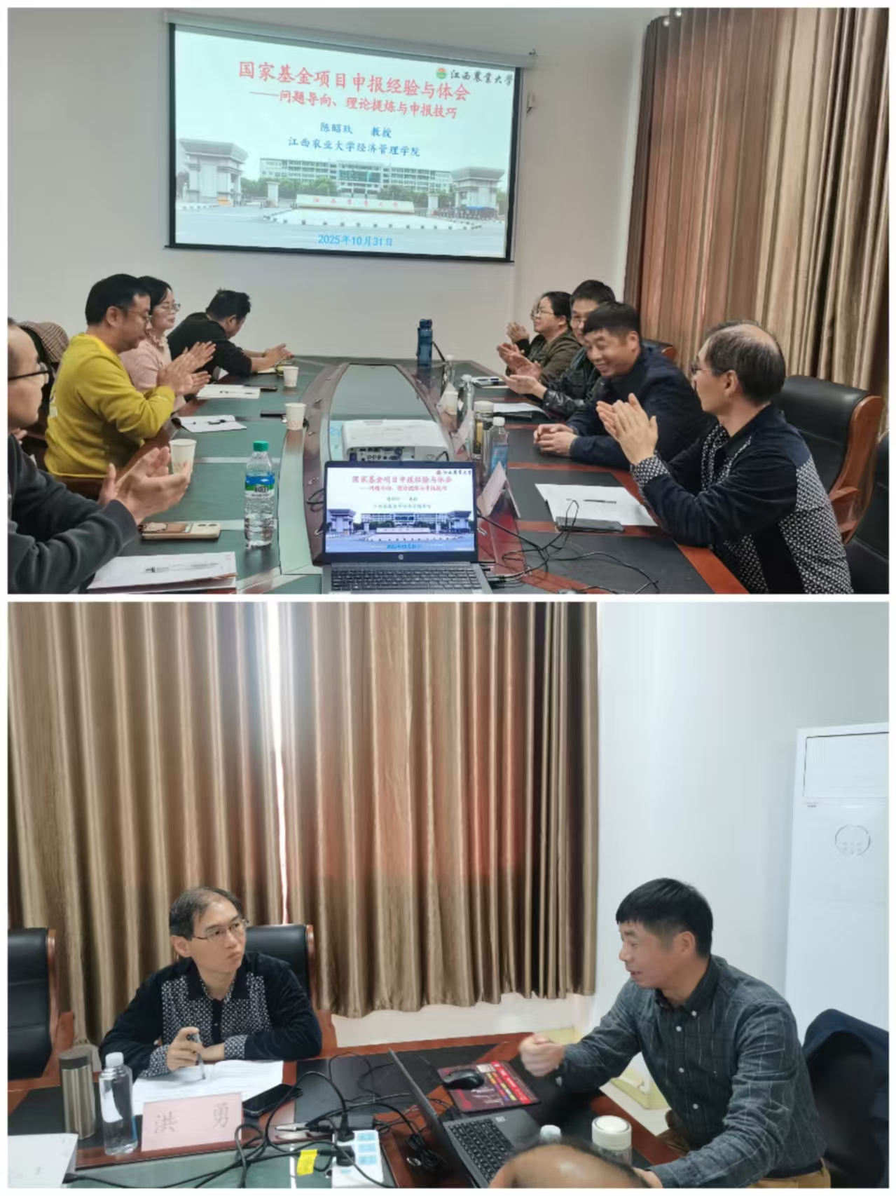 2025年10月31日下午,江西开放型经济研究中心成功举办了“国家级课题申报经验交流”讲座。此次论坛邀请了江西农业大学二级教授、省百千万人才、“井冈学者”特聘教授陈昭玖做主旨发言。研讨会由江西开放型经济研究中心负责人周业付教授主持,中心全体人员及经济学院部分研究生参加。