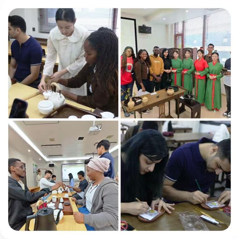 924日,2025年江西省中外人文交流周非遗与茶文化体验活动在九江职业大学顺利举行。来自九江市内高校的30余名中外师生共同走进校园,体验茶艺制作与非遗技艺,开启一场融合传统与现代的文化之旅,我校16名国际学生参加了活动。