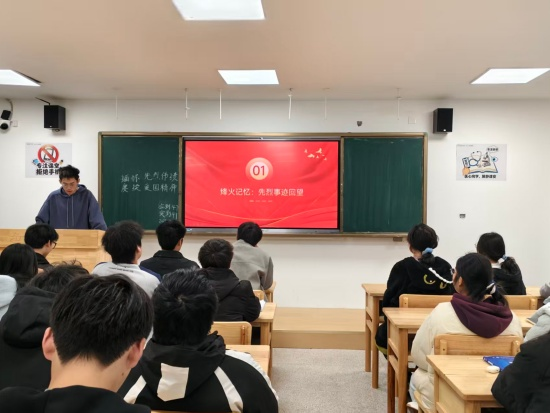 在研究生楼432教室,基础A2511班团支书熊旭宇组织开展了“先烈故事分享+情景诵读”活动。通过重温革命先烈与医学前辈的感人事迹与深情诵读珍贵家书,同学们深刻体悟到了信仰的力量与家国情怀的厚重,进一步筑牢了他们赓续红色血脉的思想自觉。