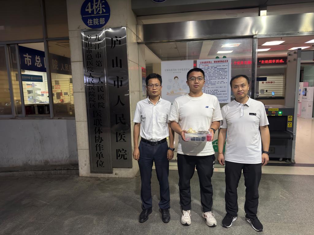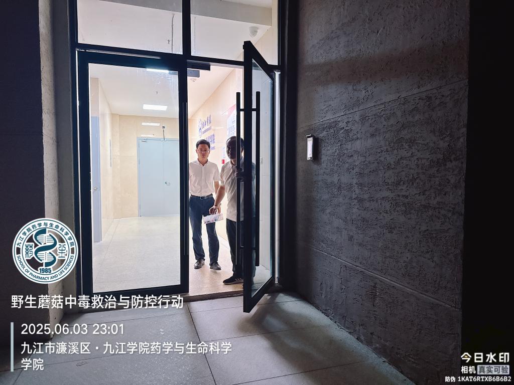 6月3日晚上,庐山市人民医院收治了误食野生毒蘑菇中毒患者,接诊医生陈珩通过江西省卫生健康委员会和江西省疾病预防控制中心搭建的野生菌中毒救治群发布求助信息。正在实验室讨论实验方案的九江学院药学与生命科学学院何刚、孙启彪老师与大学科技园张晓老师在看到中毒救治求助消息后,三人迅速作出响应,连夜驱车赶往医院。