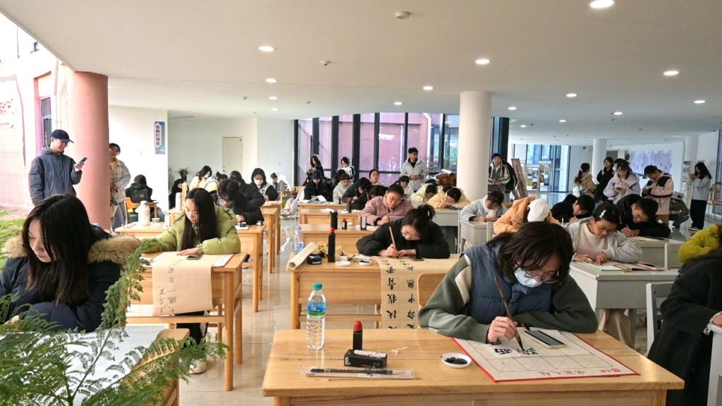 12月6日上午,紫薇园校区5号学生公寓的“一站式”示范性学生社区中,“翰墨承新·笔绘2025”书法创作活动与“甲辰掠影·2025的闪光瞬间”摄影展示活动同步拉开帷幕。在书法创作区,近百名同学分为毛笔与硬笔两组,以笔墨为媒介,尽情抒发对2025年的美好憧憬。他们或挥毫泼墨,书写豪迈壮志;或工整书写,传递细腻情感,现场墨香四溢。与此同时,摄影展示区展出的60余幅作品也吸引了众多师生的目光。每张照片都配有真挚的文字说明,生动讲述着九院人的温暖故事,引得大家驻足欣赏、细细品味。