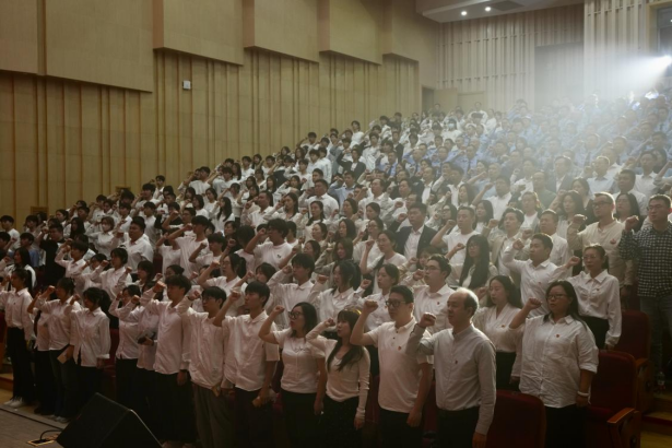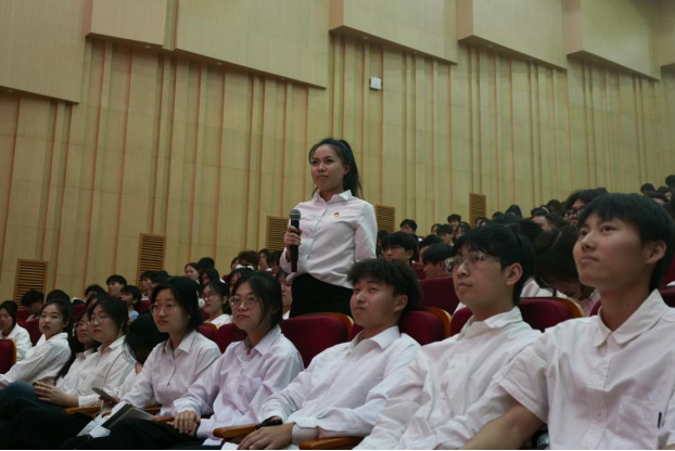 其中现场答题与宣誓环节成为亮点。在国家安全知识竞答中,艺术学院师生党员率先抢答、反应敏捷,五道涵盖网络安全、反间谍法等内容的题目均被我院师生精准解答,现场气氛热烈;随后的集体宣誓环节,百余名师生党员在领誓人带领下高举右拳,面向党旗庄严承诺“以行动捍卫国家安全”,铿锵誓言响彻音乐厅,将活动推向高潮。