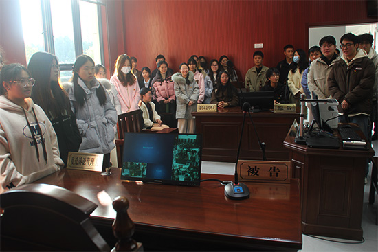 随后,同学们走进庄严肃穆的审判庭。讲解员首先介绍了法庭布局规范,从审判席、公诉席到辩护席、旁听席,每一个位置的设置都蕴含着深刻的法治意义和严谨的司法逻辑。接着,讲解员以盗掘古墓案件为实践样本,详细介绍了庭审程序与司法原则。从案件的受理、调查取证、法庭辩论到最终判决,每一个环节都严格按照法律规定进行,充分体现了司法工作的严谨性与公正性。同学们仿佛置身于庭审现场,感受着法律的威严与公正。