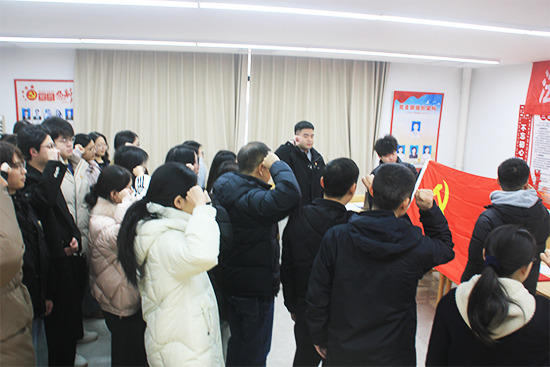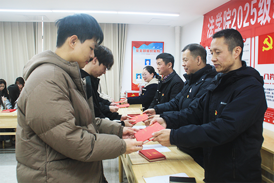 宣誓活动在激昂的《国际歌》中拉开帷幕。党员代表崔正阳带领新老党员面向党旗庄严宣誓。铿锵有力的誓言回荡在活动室,彰显了新党员对党的忠诚与为共产主义事业奋斗终身的决心。法学院党委副书记陈永钊向新党员表示热烈祝贺,并寄语全体新党员:“要牢记党的宗旨,以高标准严格要求自己,在学习和生活中发挥先锋模范作用,不负组织的信任与期望。”同时,他也勉励入党积极分子深入学习党的基本理论,以实际行动争取早日加入党组织。