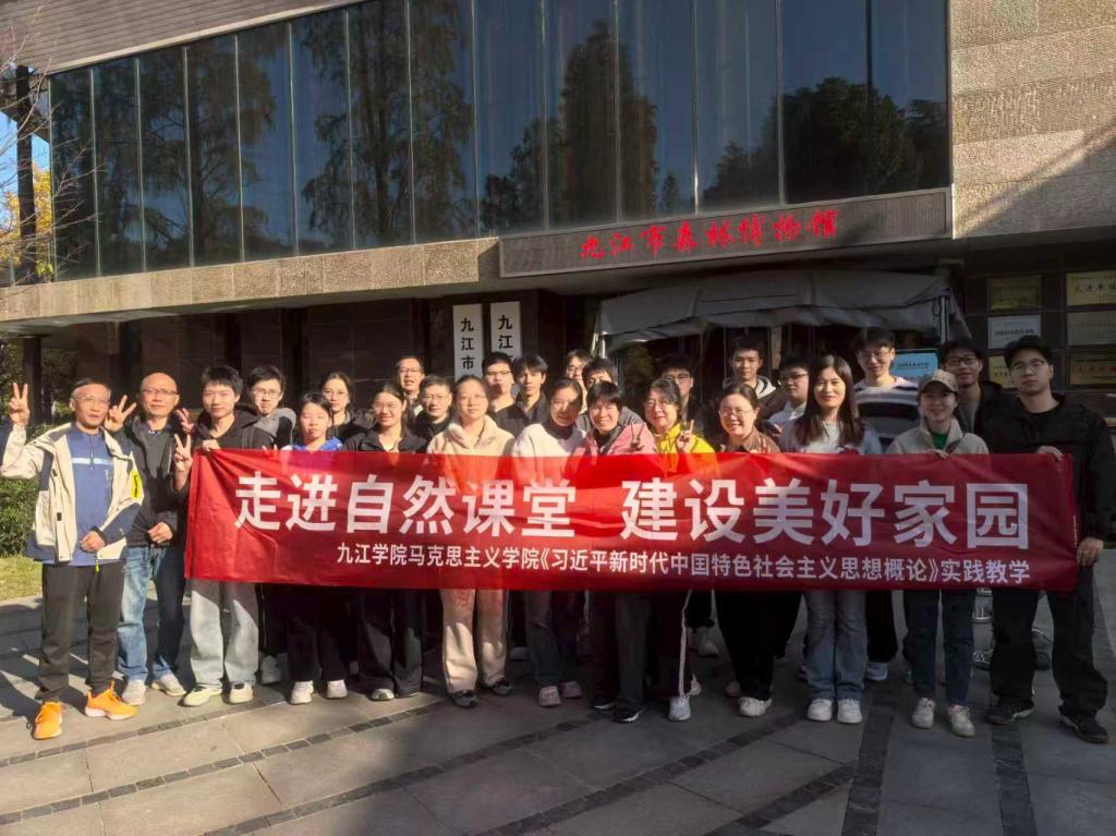 为深入学习贯彻党的二十届四中全会精神,推动习近平新时代中国特色社会主义思想在教育教学中落地生根,响应“加快经济社会发展全面绿色转型、建设美丽中国”的战略部署,2025年11月26日,九江学院马克思主义学院习近平新时代中国特色社会主义思想概论教研室全体教师带领化工A2341、A2342班学生,赴天花井国家森林公园开展“生态、文化与健康融合实践行”沉浸式实践教学活动。活动以“理论+实践”为核心,通过多场景体验、多维度互动,让师生在知行合一中深化生态认知、传承文化基因、践行健康理念,为课堂教学注入鲜活生命力。