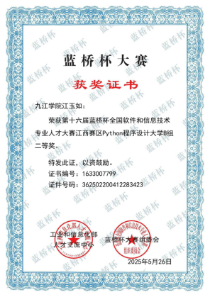 团队负责人:九江学院计算机与大数据科学学院物联网工程专业江玉如