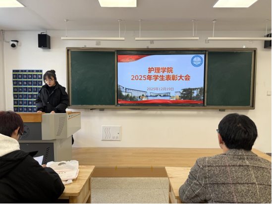 为表彰先进、树立典型,激励护理学子锐意进取,12月19日,护理学院2025年学生表彰大会在教学楼B204教室举行。党委副书记龚英军、党建与思政科科长陈鹏、学生科科长周海霞出席会议,与获奖学生及学生会各部门骨干齐聚一堂,共同回顾奋斗历程。大会由学生会轮值主席马添碌主持。