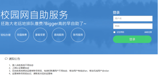 2)点击进入“自助服务系统”http://10.1.1.2:8080/selfservice ;使用学号和对应密码登录(首次登录2019届新生初始密码为123456,往届为身份证后六位);