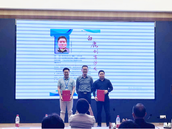 会前,产学研办主任张晓明、计算机与大数据学院院长邓安远热情接见了金官丁一行,并为金官丁、刘才福颁发了创业导师聘书。