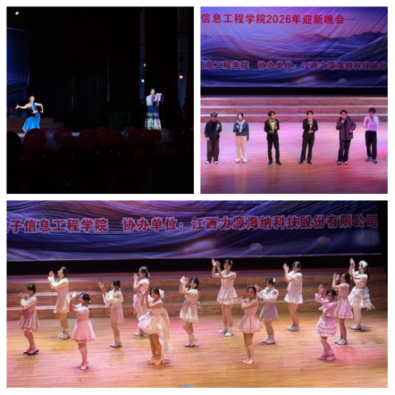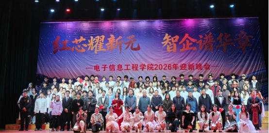 2025年12月19日晚,电子信息工程学院“红芯耀新元,智企谱华章”迎新年、迎新生主题晚会在学校南门大礼堂隆重举行。晚会由电子信息工程学院主办、江西力源海纳股份有限公司协办,融合迎接2025级新生与欢庆2026新年的“双新”之意,为全院师生呈现了一场精彩纷呈的青春盛会。