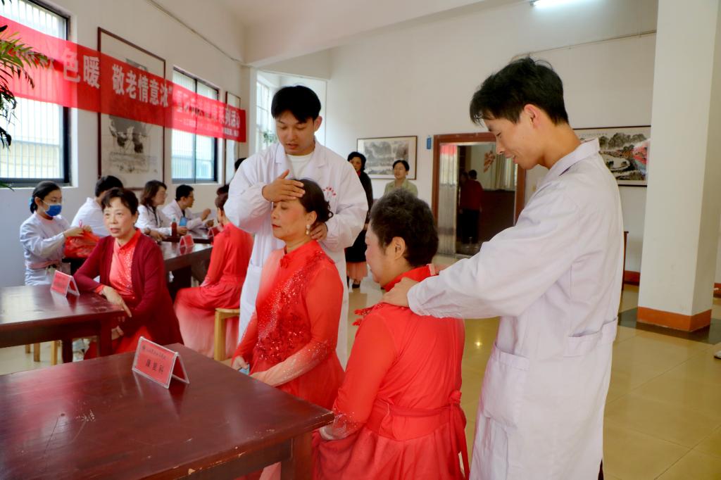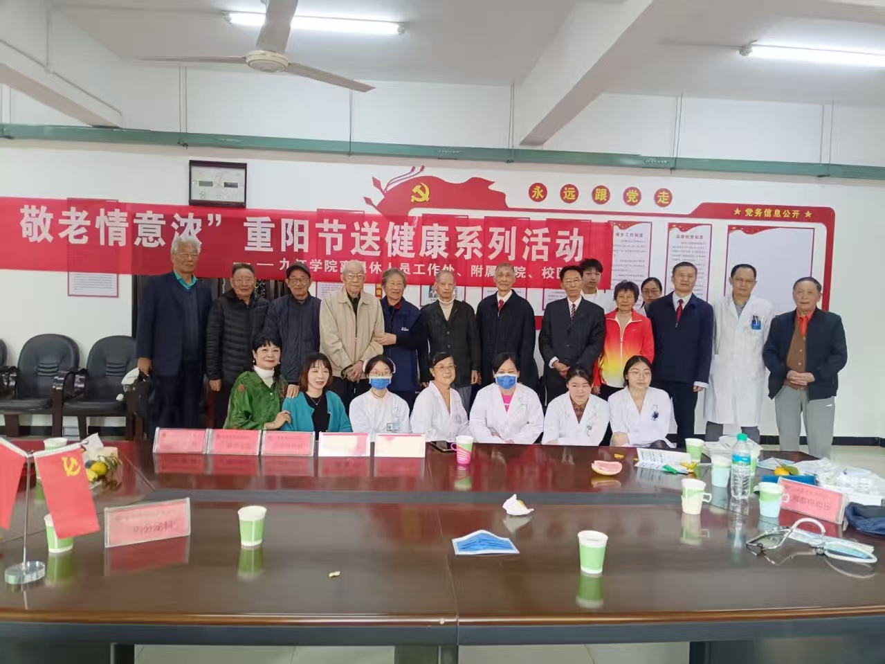 九江学院附属医院和校医院在重阳节为离退休教职工开展了“敬老爱老”的义诊活动。
