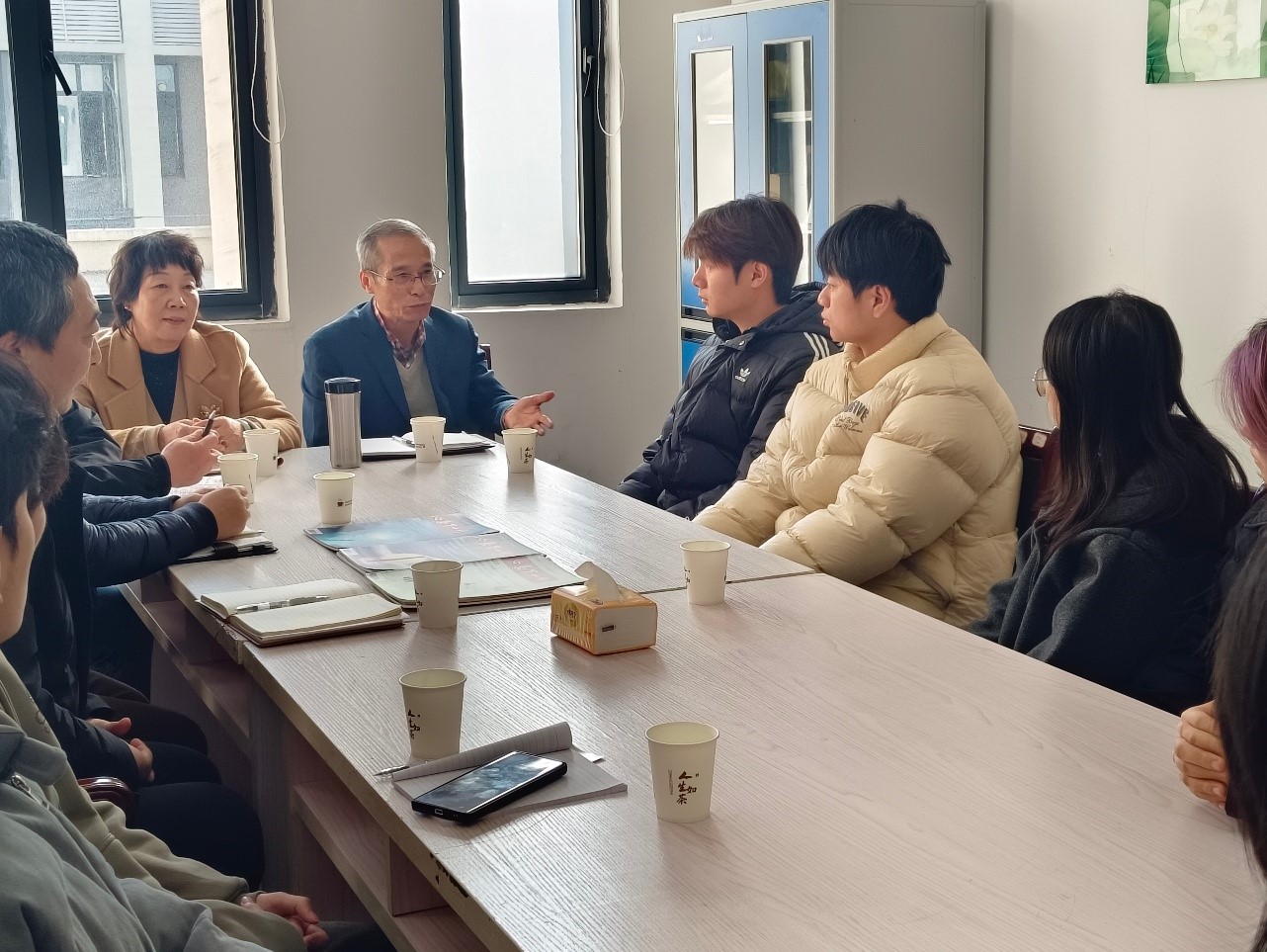 为进一步加强大学生心理健康教育工作,充分发挥“五老”的优势,助力学生健康成长。2025年11月19日,九江学院关工委联合基础医学院,将“心灵驿站”活动搬进紫薇园2栋“一站式”学生社区。校关工委副主任张进,“五老”宣讲团成员邓燕、基础医学院负责人及部分师生代表参加此次活动。